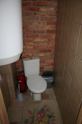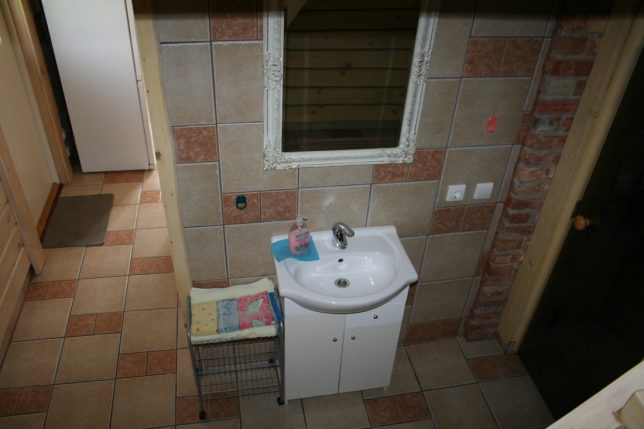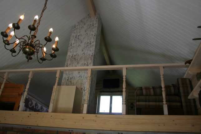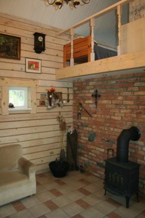 We currently offer a small cozy house perfect for a family of two adults and 2 children (first floor area is 40 sq. meters while second is 20 sq. meters). Downstairs there is a spacious high ceiling common room joined with the kitchen area and fire place which is the main source of heating.