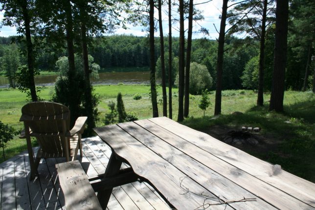 Upstairs is sleeping area, TV and internet with complimentary bedding provided. Next to the house outside is a bonfire place perfect for cooking along with a sturdy table overlooking Nemunas river.
